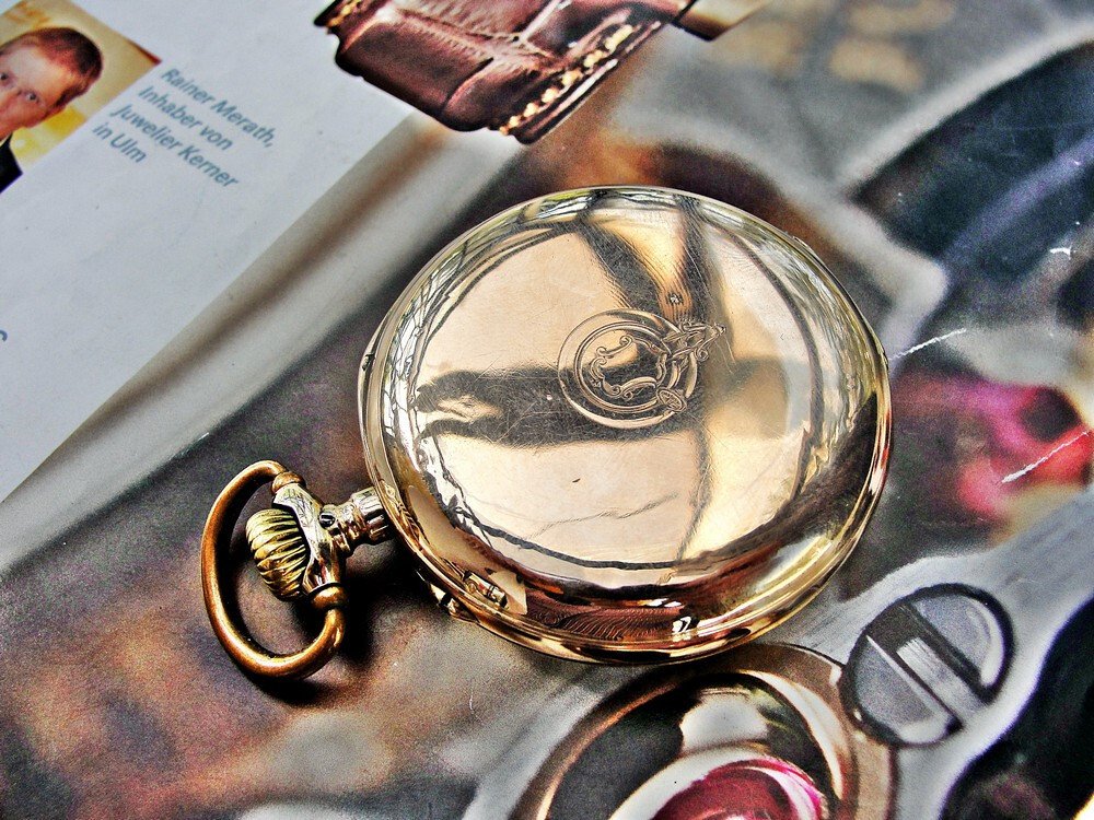 IWC Schaffhausen 14-karat gold pocket watch from the 1920s.