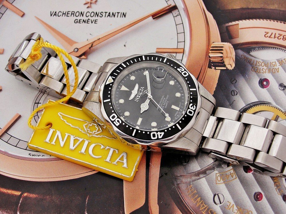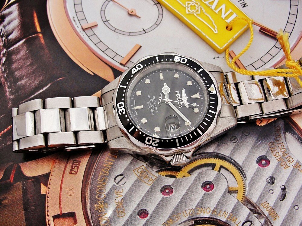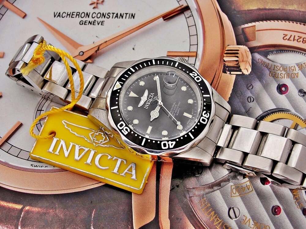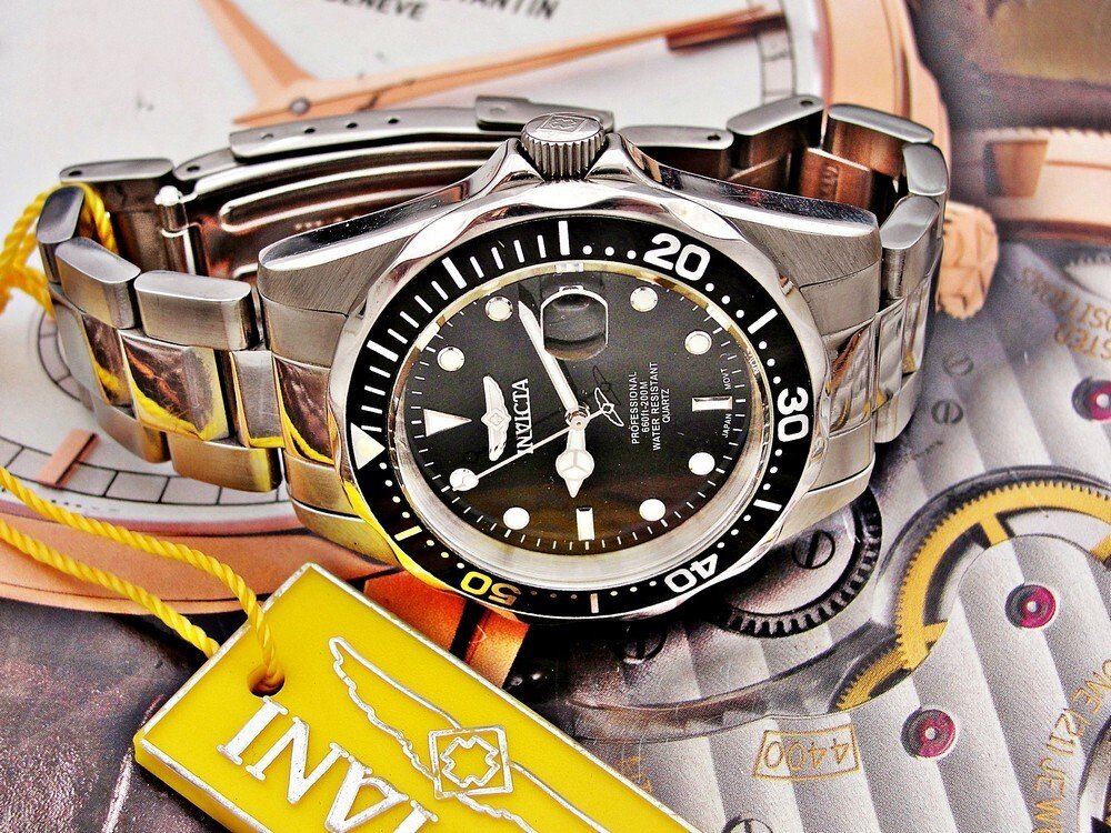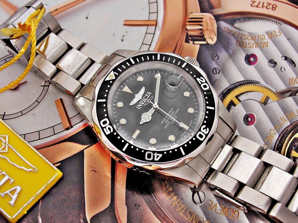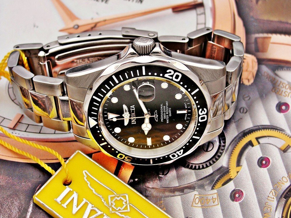 Nice steel Invicta diver's watch with box. Very nice steel case, very nice numbered crown. Comes with its own steel strap. Quartz movement. Works Size 39mm measured without crown.
