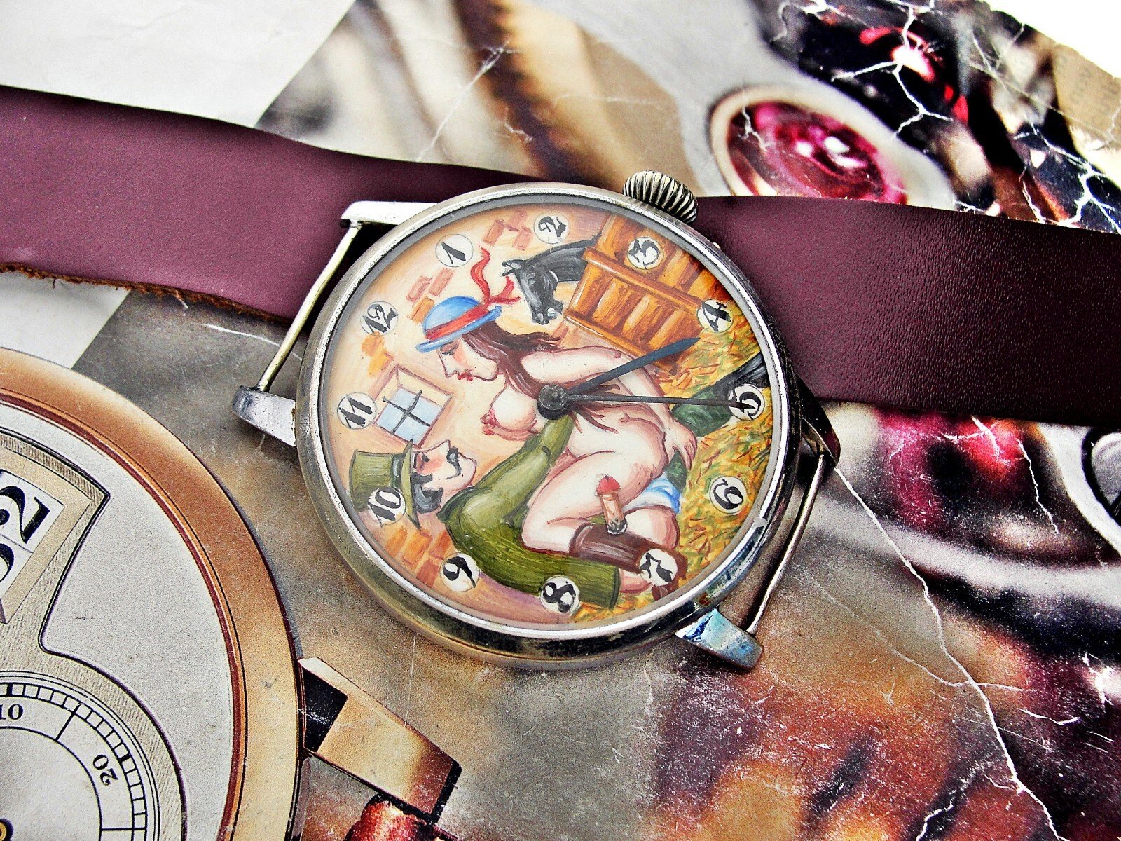 Rare erotic hand-painted wristwatch from the 1920s.