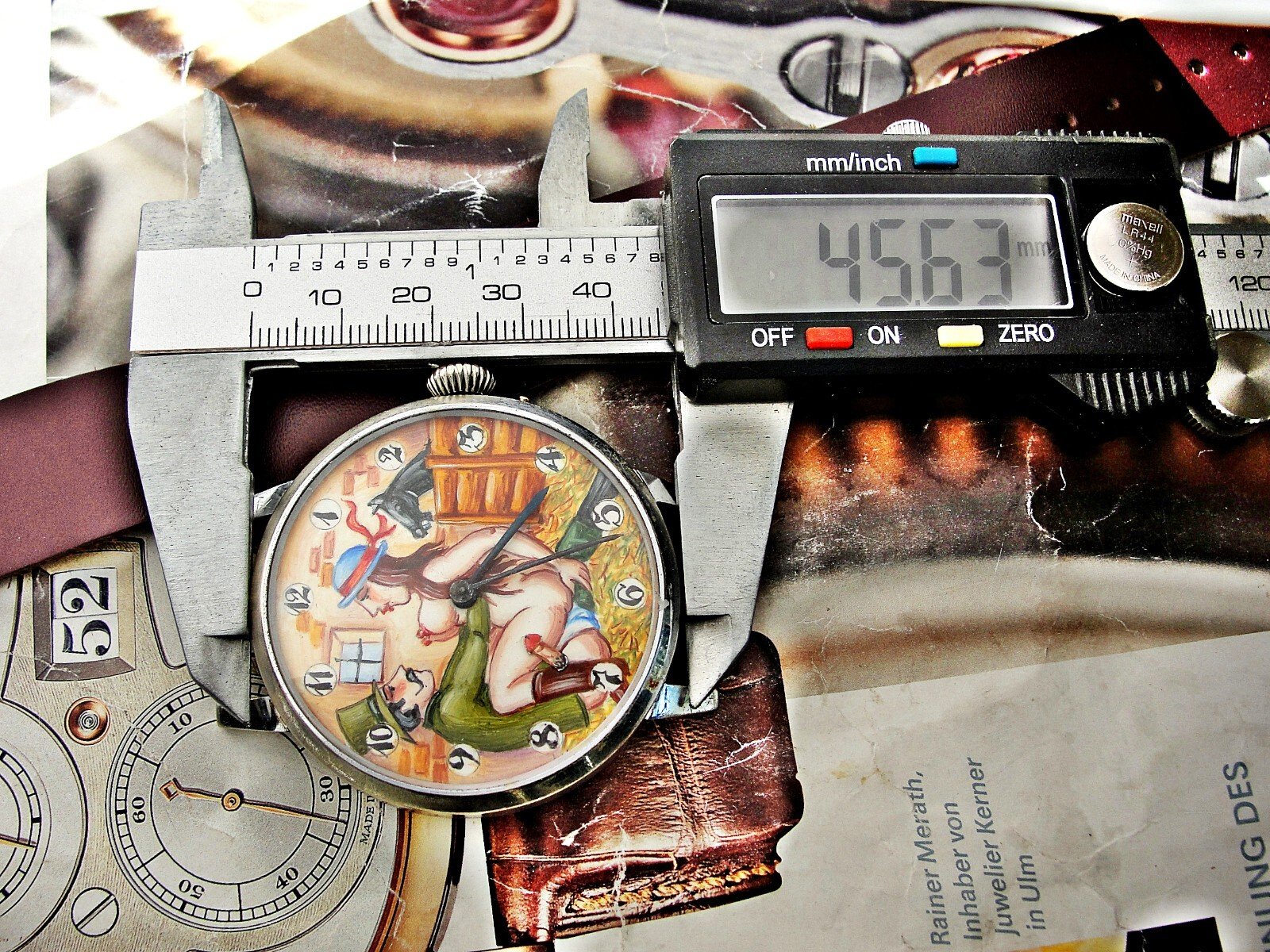 Very nice hand-painted dial, the penis moves up and down, the watch mechanism moves it.